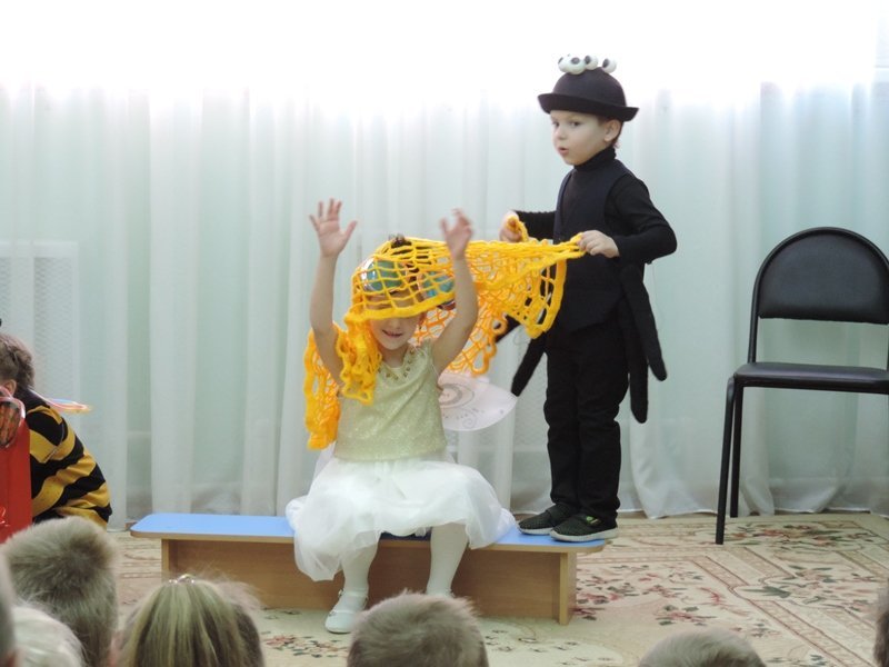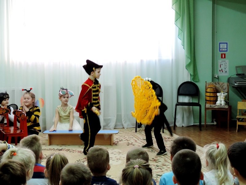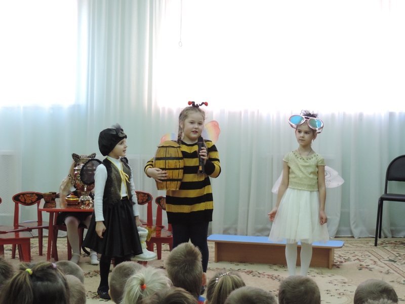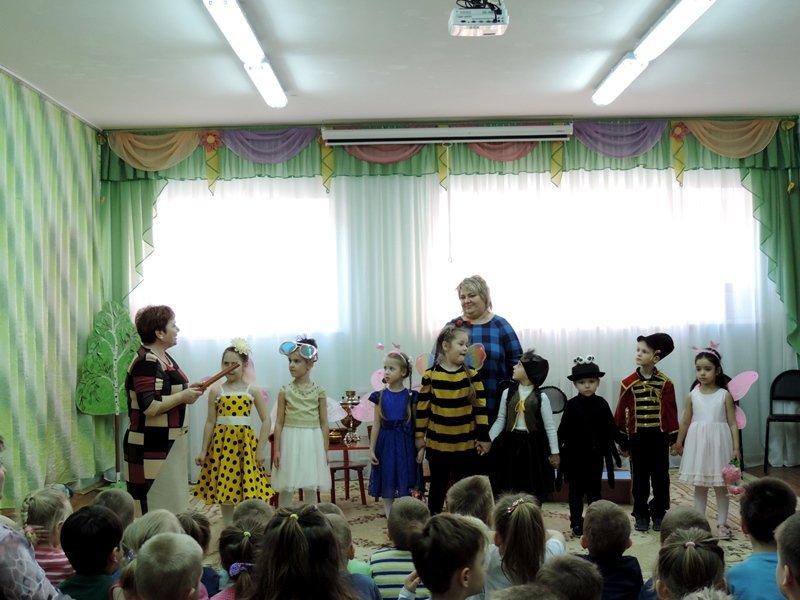 2 апреля в детском саду в рамках ежегодной встречи в «Театральной гостиной» состоялась встреча детей и сотрудников детского сада с педагогами и учащимися Товарковской школы искусств. Малышам была показана музыкальная сказка «Муха Цокотуха».