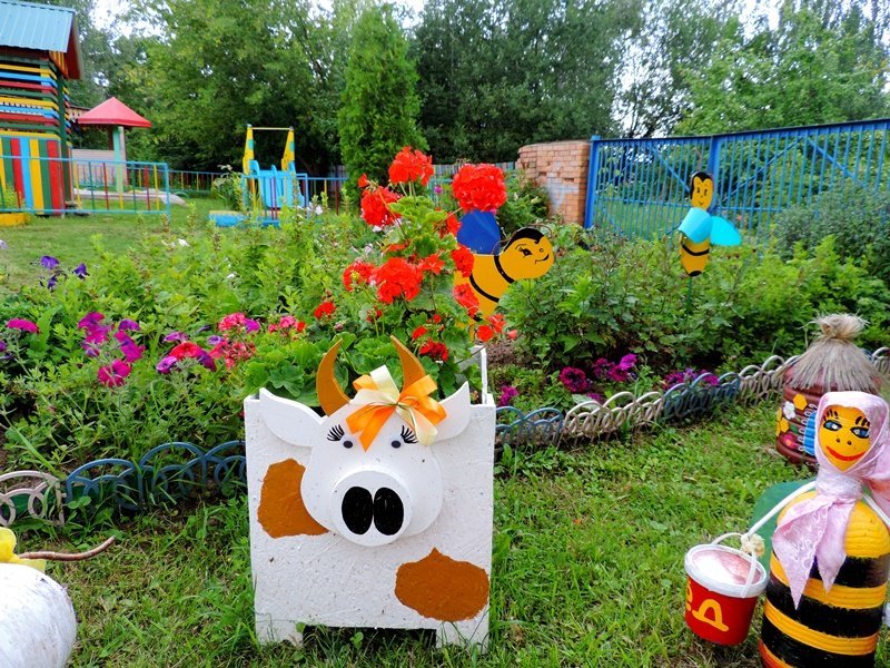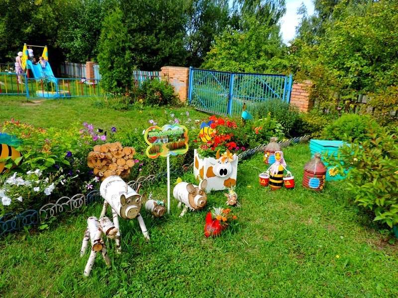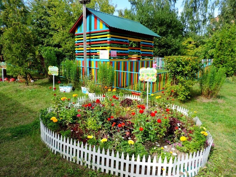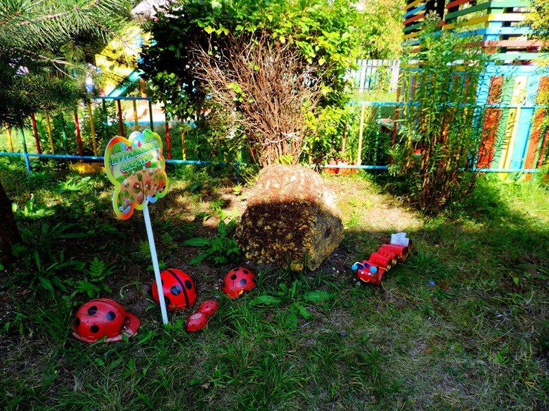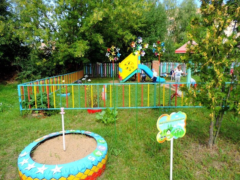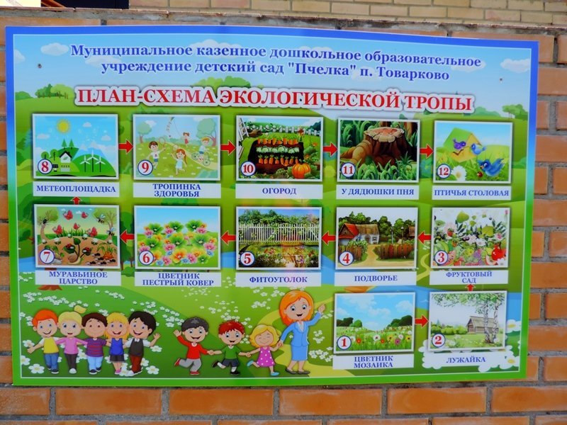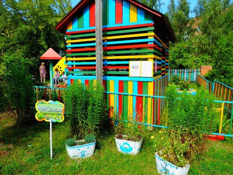 В рамках завершающих мероприятий муниципальной опорной площадки по реализации Программы "Организация познавательно-исследовательской деятельности дошкольников на экологической тропе" в летний период педагоги детского сада провели большую работу по созданию объектов экологической тропы: на метеоплощадке в дополнение к солнечным часам появился дождемер, термометр для измерения температуры окружающего воздуха, календарь для определения состояния погоды; занял свое почетное место фитоуголок с лекарственными травами; для муравьиного царства был изготовлен макет муравейника; доброжелательный "Дядюшка пень" встречает и провожает детей и рассказывает дошкольникам свои таинственные истории. Объект "Подворье" оснащен домашними животными и птицами благодаря совместным усилиям педагогов и родителей в ходе объявленной выставки "Веселое подворье". Наиболее активными были родители группы № 1(воспитатели: Ашинова Г.М., Пашинская О.Н.), группы № 3 (воспитатели: Шишкина Е.А., Харыбина Е.А.), группы № 5 (воспитатель Савина В.А.).Благодаря такой проделанной работе прогулки детей, посещающих детский сад, стали более увлекательными и насыщенными. Дети с большим удовольствием занимаются познавательно-исследовательской деятельностью. Территория детского сада превратилась в экологическую страну, где каждого малыша ждет свое удивительное чудо!