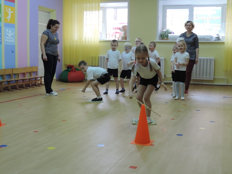 Веселые эстафеты: "Игольное ушко", "На болоте", "Тоннель", "Проведи мяч обручем", "Веселая ноша" динамично сменяли друг друга, а дети по крупицам приобретали ценный опыт слаженной работы в команде, передавая эстафету своему сверстнику.