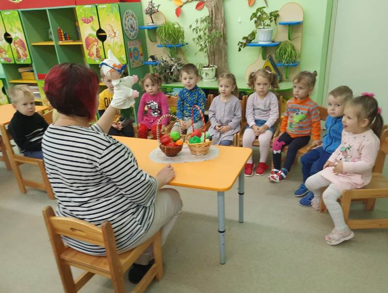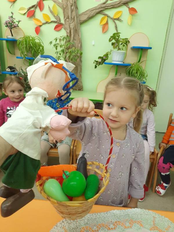 В младшей группе № 5 "Винни-Пух" воспитатель Антонова А.А. провела беседу "Овощи и фрукты - полезные продукты" и дидактическую игру "Что у Маши болит?".