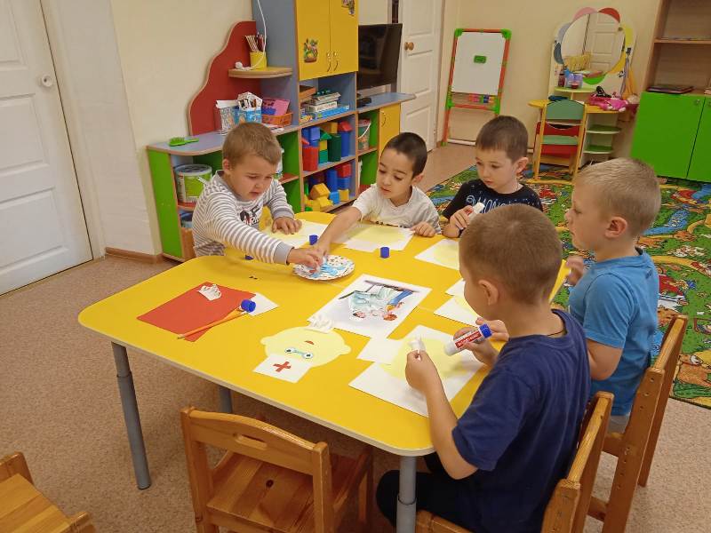 Дети старшей группы "Семицветики" активно участвовали в беседе о профессии врача и выполнили аппликацию "Доктор Айболит" под руководством Харыбиной Е.А. Воспитатель Васильева Е.В. провела с дошкольниками старшей группы "Семицветики" игру-беседу "Путешествие в Страну здоровья", упражнение "Солнышко", беседу "Как беречь зрение", зрительную гимнастику, дидактические игры: "Выбери полезные продукты", "Путешествие за полезными продуктами", рисование в нетрадиционной технике "Яблочный компот".