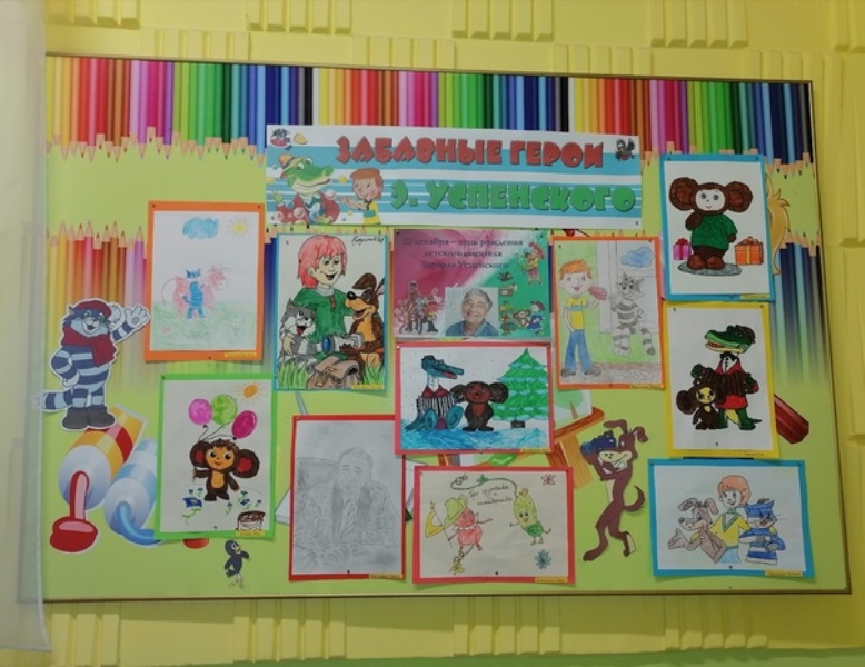 К 85 - летию со дня рождения писателя была приурочена выставка совместных детско-родительских рисунков "Забавные герои Э.Успенского".