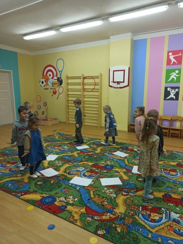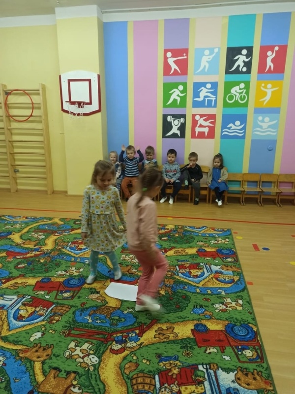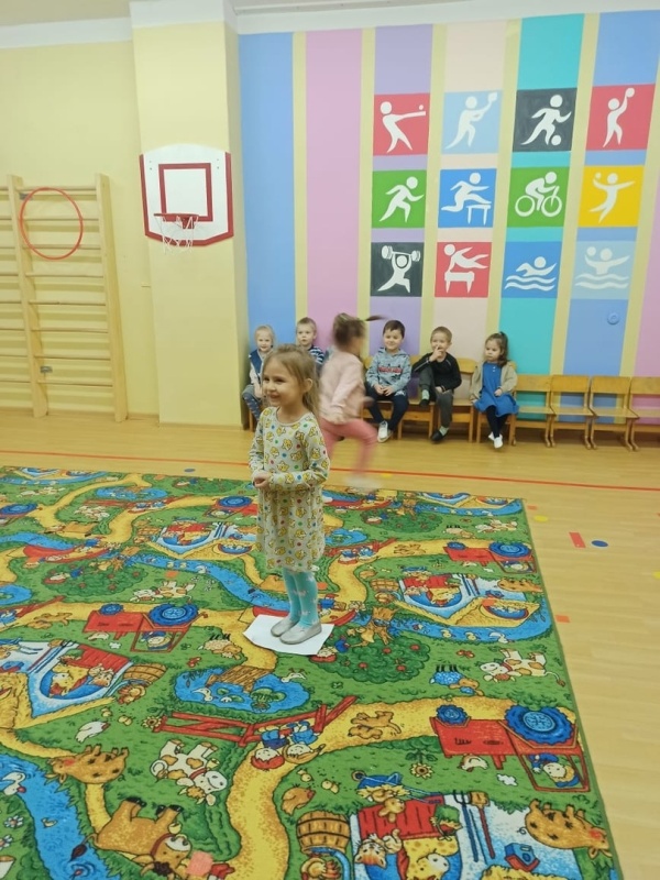 В спортивном зале с удовольствием научились играть в игру "Займи льдинку".