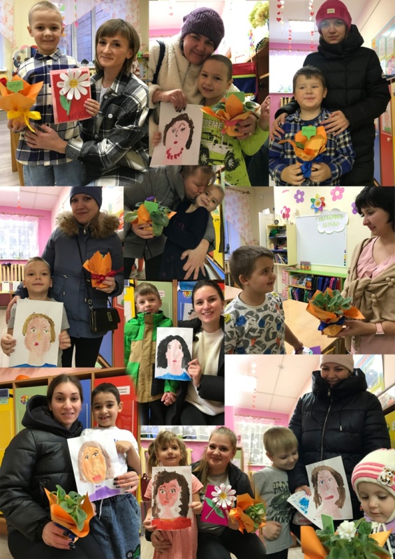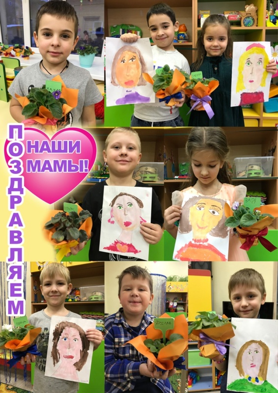 Выращенные цветы дети бережно упаковали, подбирая ленточку подходящего цвета. Подарок дополнили традиционным портретом мамы.