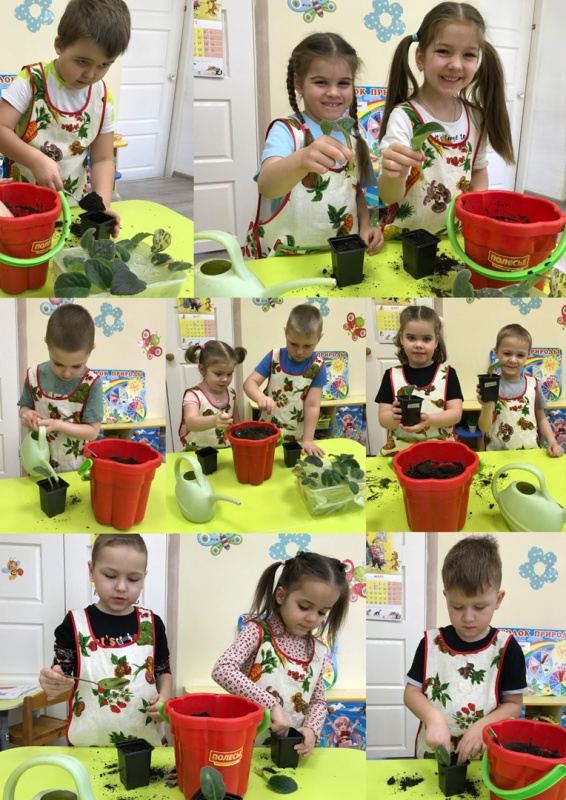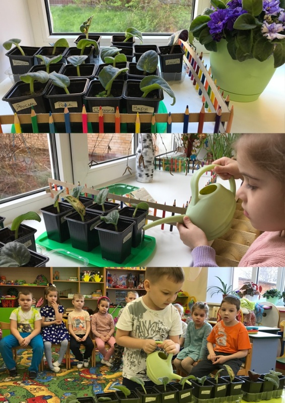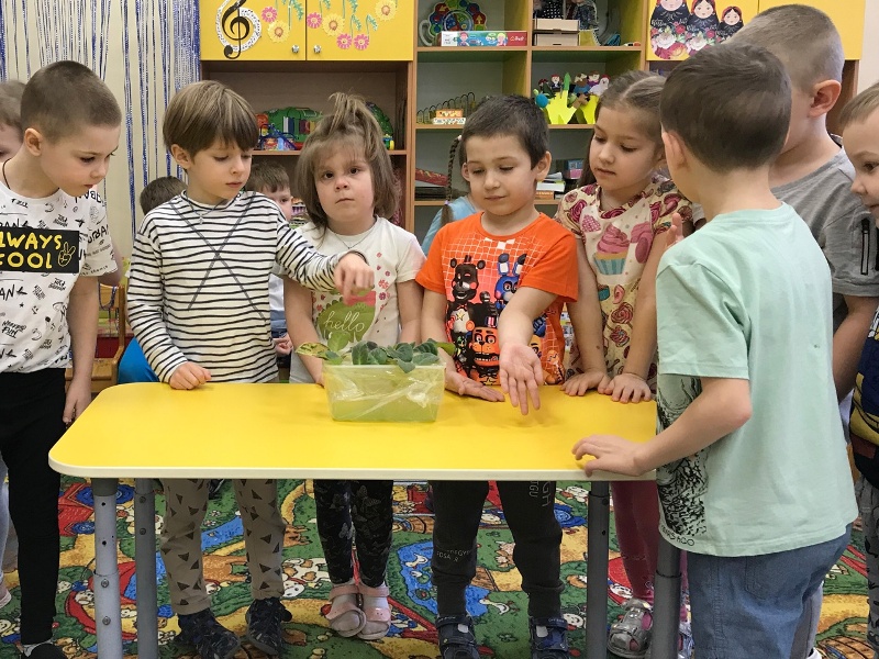Дети наблюдали за посаженными листиками и ухаживали за ними.