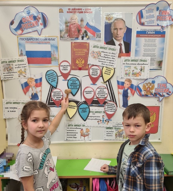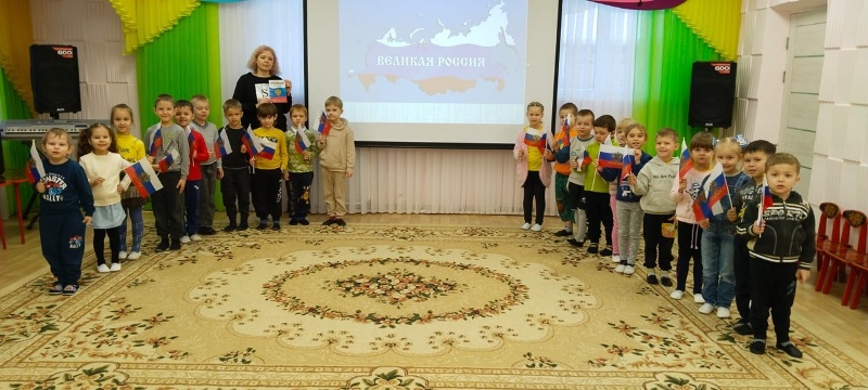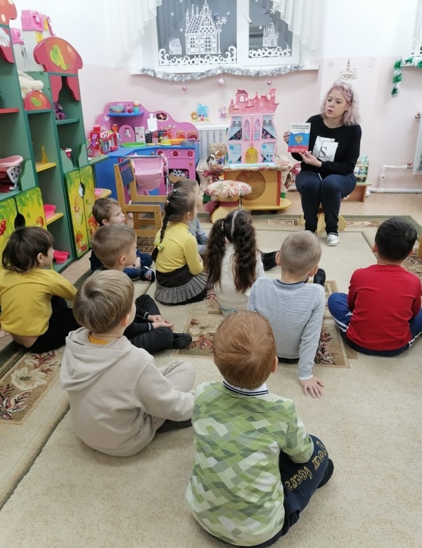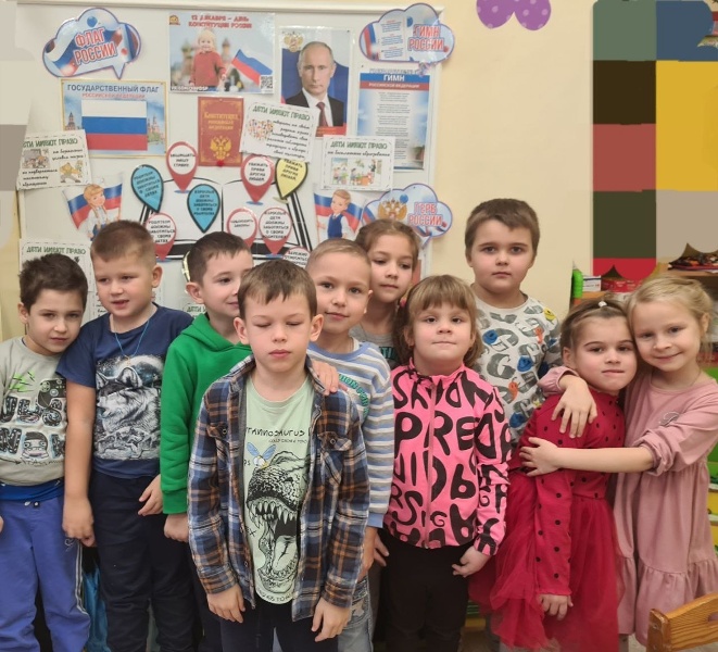 Сегодня в старших группах "Жемчужинка", "Лучики" и подготовительной к школе группе "Семицветик" прошел тематический день "Мы – граждане России", посвященный Дню Конституции.