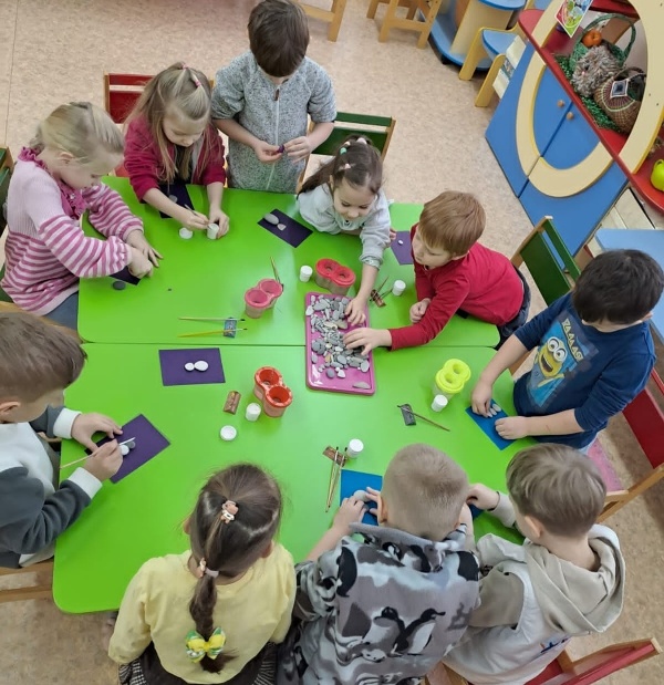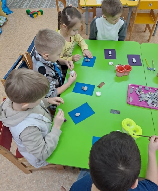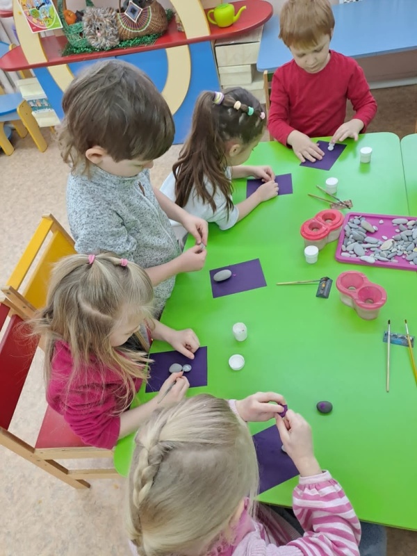 Дети старшей группы "Жемчужинка" (воспитатель Шишкина Е.А.) сделали забавных снеговиков из гладких камушков (гальки). Вот какие очаровательные получились.