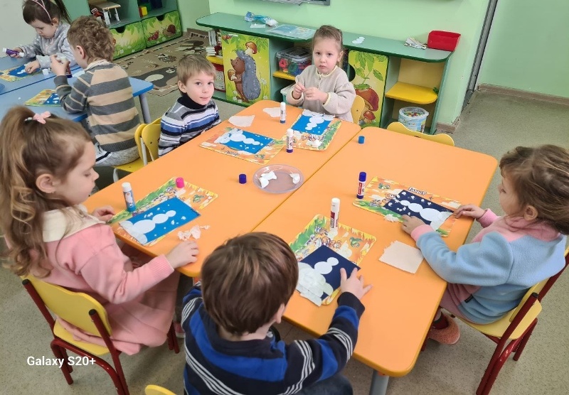 Ребята средней группы "Винни-Пух" (воспитатель Петренко В.В.) играли в игры "Подбери эмоции Снеговику", "Почта Снеговика" (найди свою пару), "Сделай Снеговика из снежных шаров", лепили снежную бабу необычным способом и выполнили аппликацию "Зимним вечером".