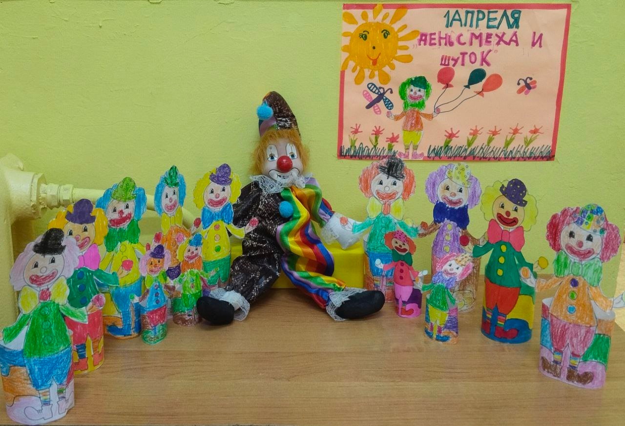 Ко «Дню смеха» в старшей группе «Жемчужинка» дети мастерили праздничные колпачки, а дети старшей группы "Лучики" сделали вот таких забавных клоунов.